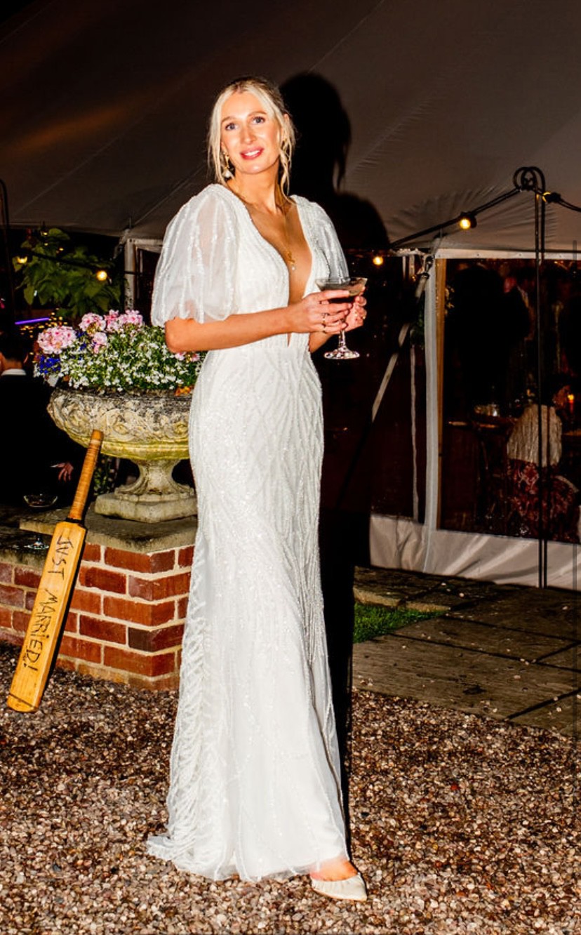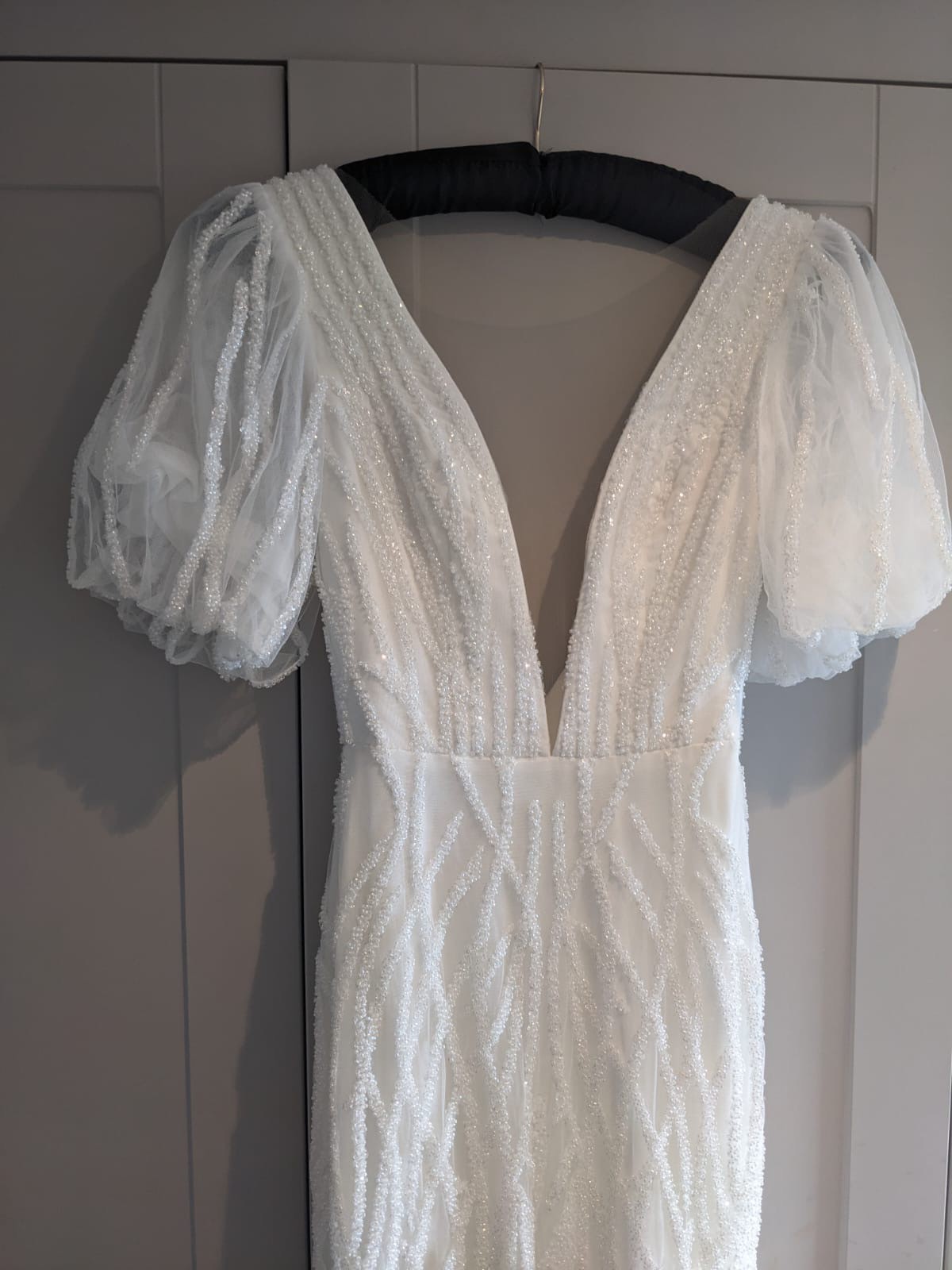 My beautiful evening wedding dress! Elegant dress with beading throughout. A perfect fit and I adored wearing it. Amazing quality!