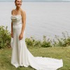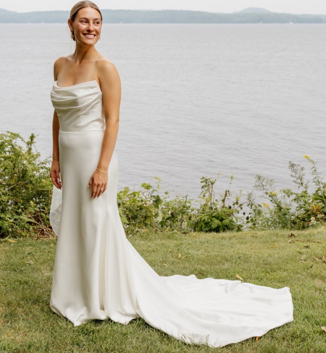 Strapless Charmeuse Fit and Flare Wedding Dress with Scooped Neck