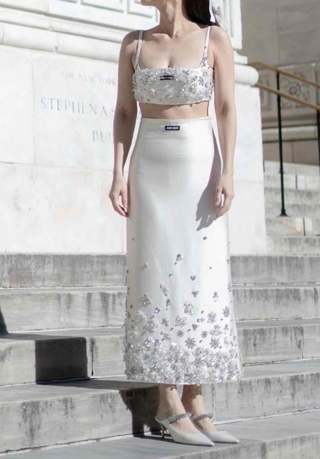 Miu miu dress that can wear regular separate piece after the wedding! I selected this outfit because it’s chic, trendy and classy, elegant. Not just only can be wear during the wedding after party, but also, you can mix and match the top with jean, or the skirt with T shirt after the wedding is over.