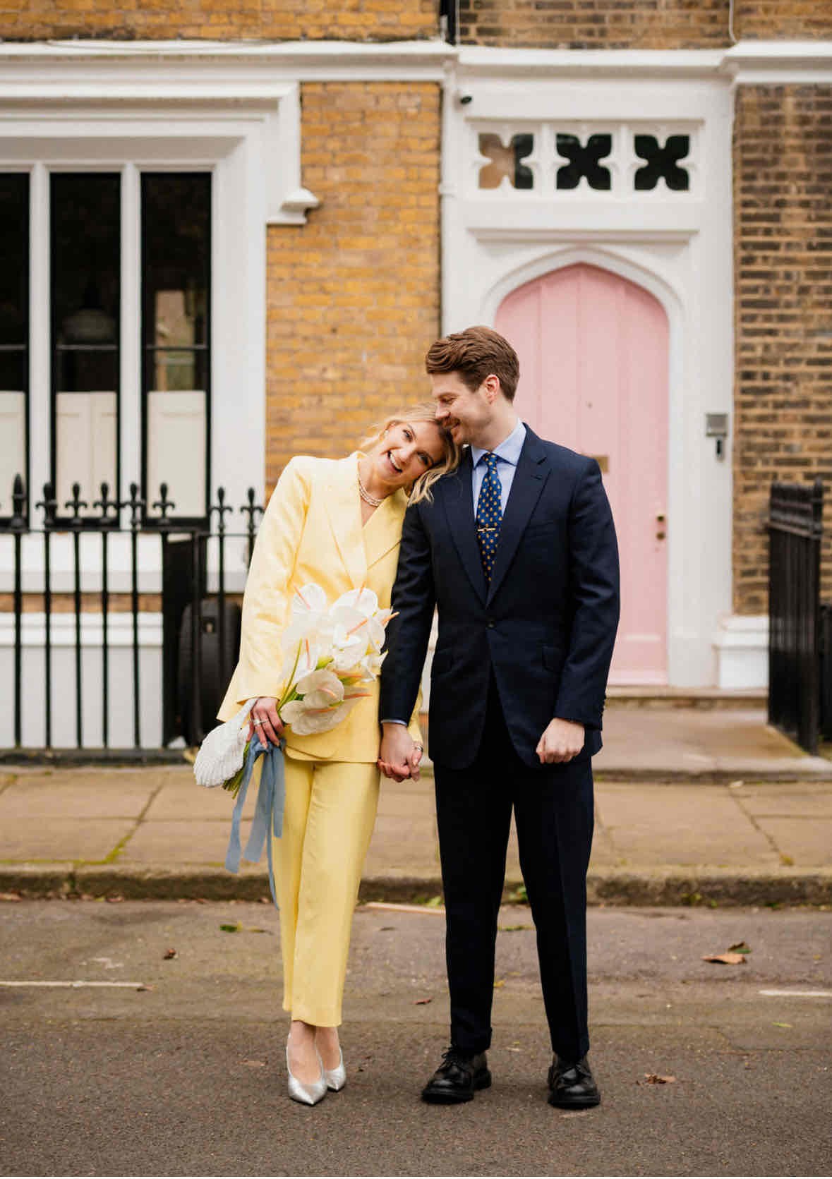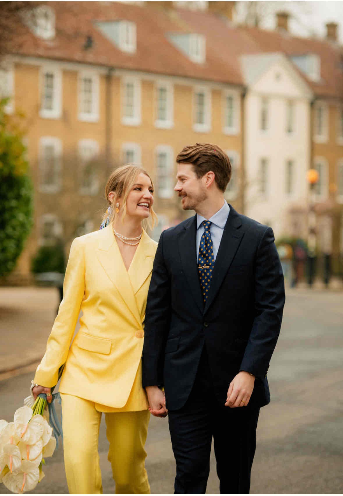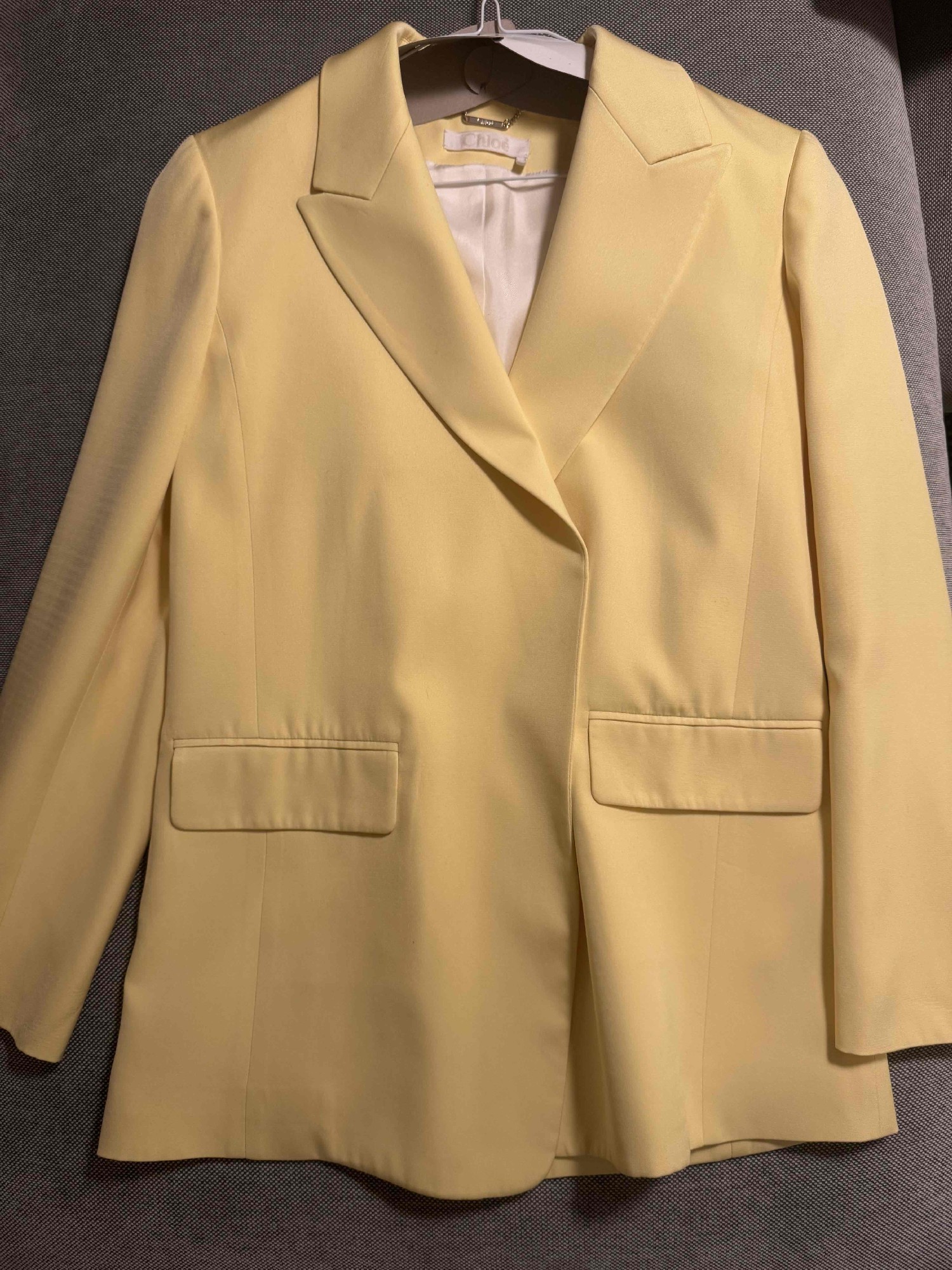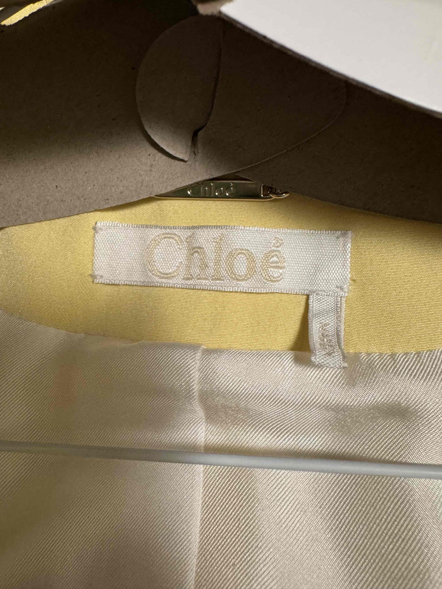 Beautiful 100% silk pale yellow Chloe suit (blazer and trousers) Worn once for my civil ceremony in London - uk size 10 but I’m a 6/8 and wore it with some clips on the trousers to bring the waist in (can include if you like) as I wanted the blazer oversize. It’s a stunning suit I got so many compliments. Totally perfect condition except two tiny specks on the side of the left leg - totally invisible to the eye when wearing. Can share picture. Can be altered to fit smaller or shorter - happy for anyone in London to come and try it on. Still available on My Theresa for £3500 Will include pure 100% silk slip in matching colour if wanted