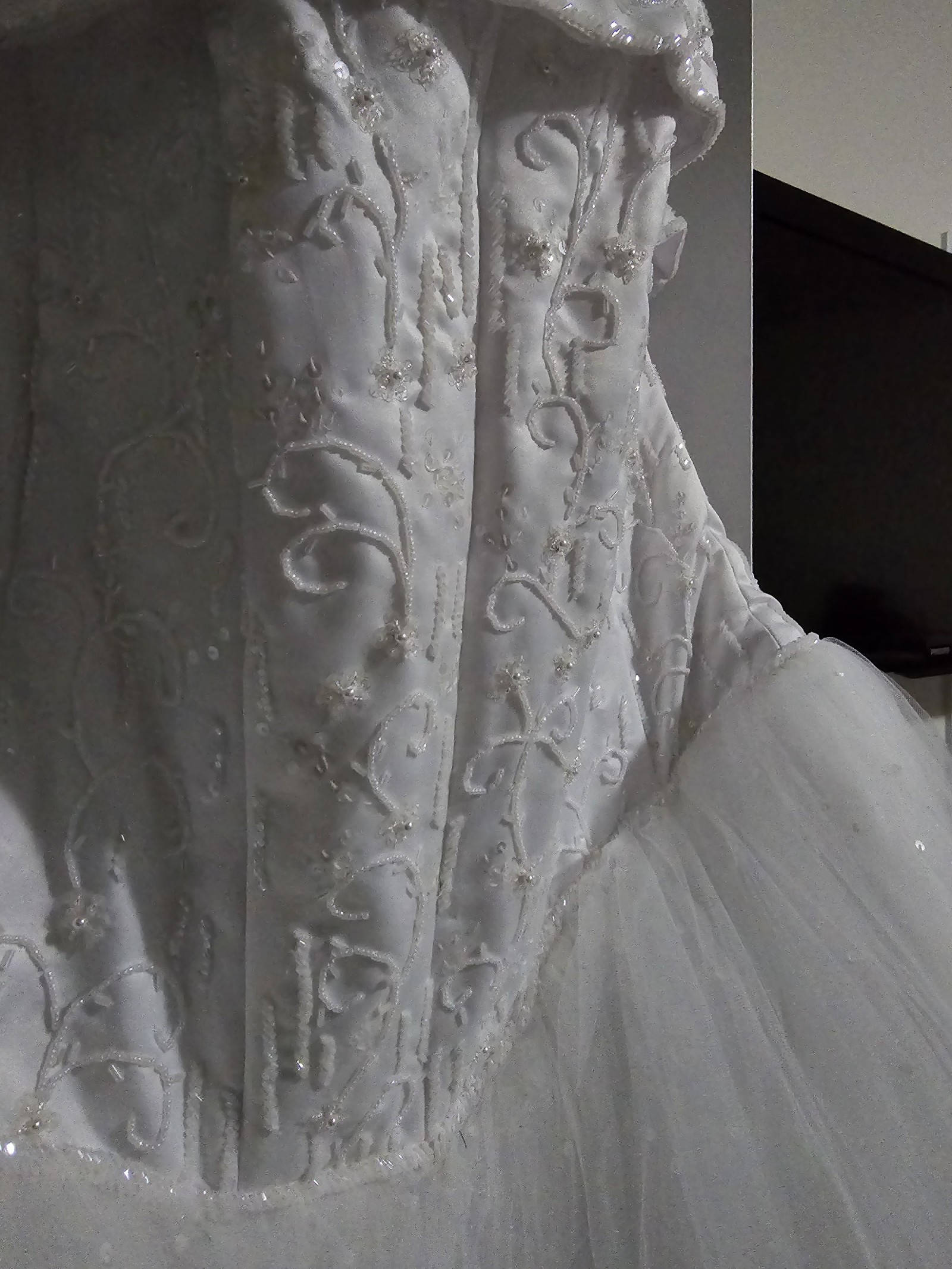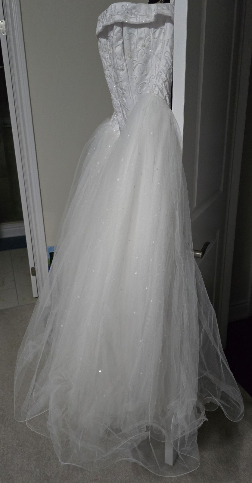 * picture with dress on was at fitting of floor model. Selling the brand new ordered dress never worn.