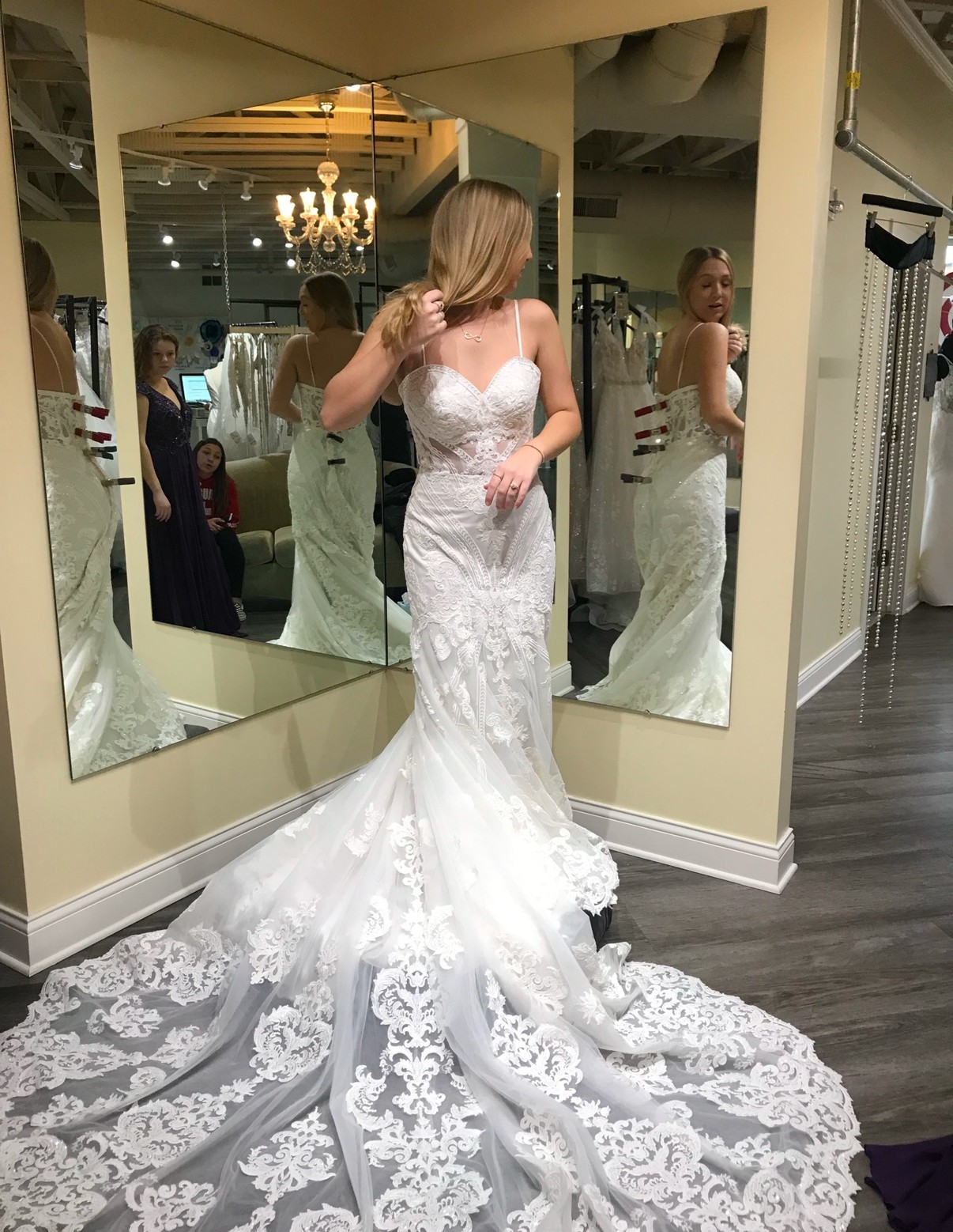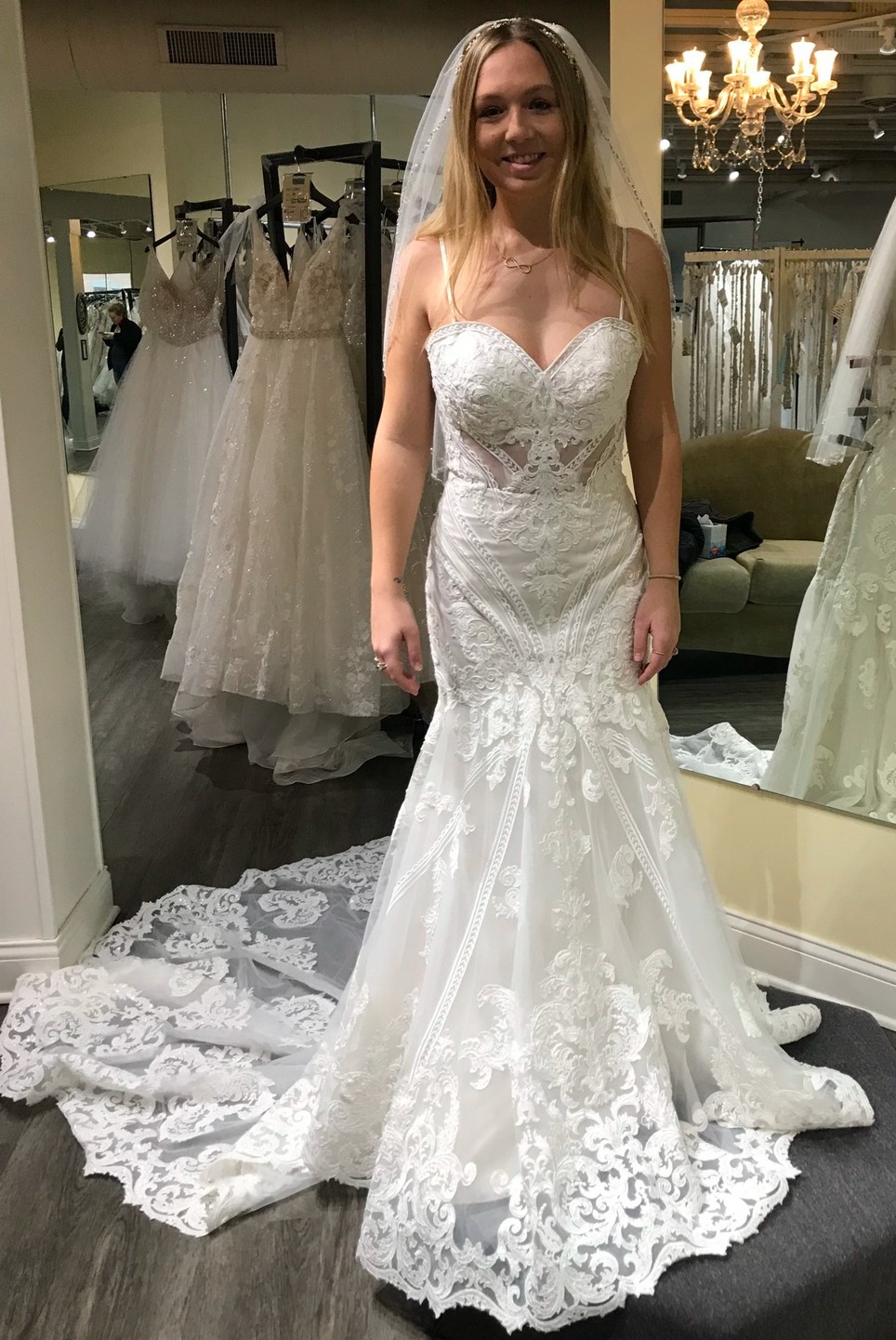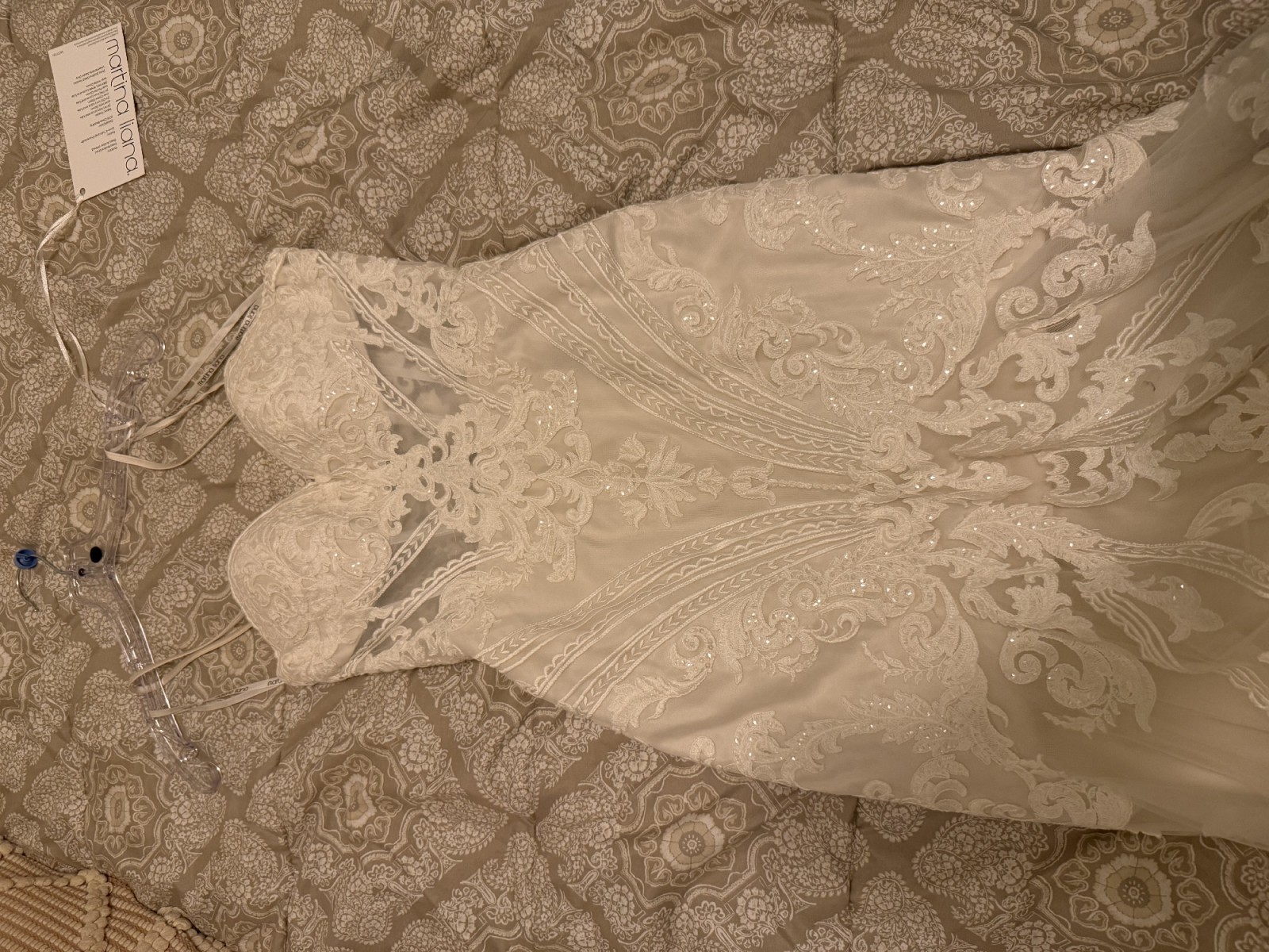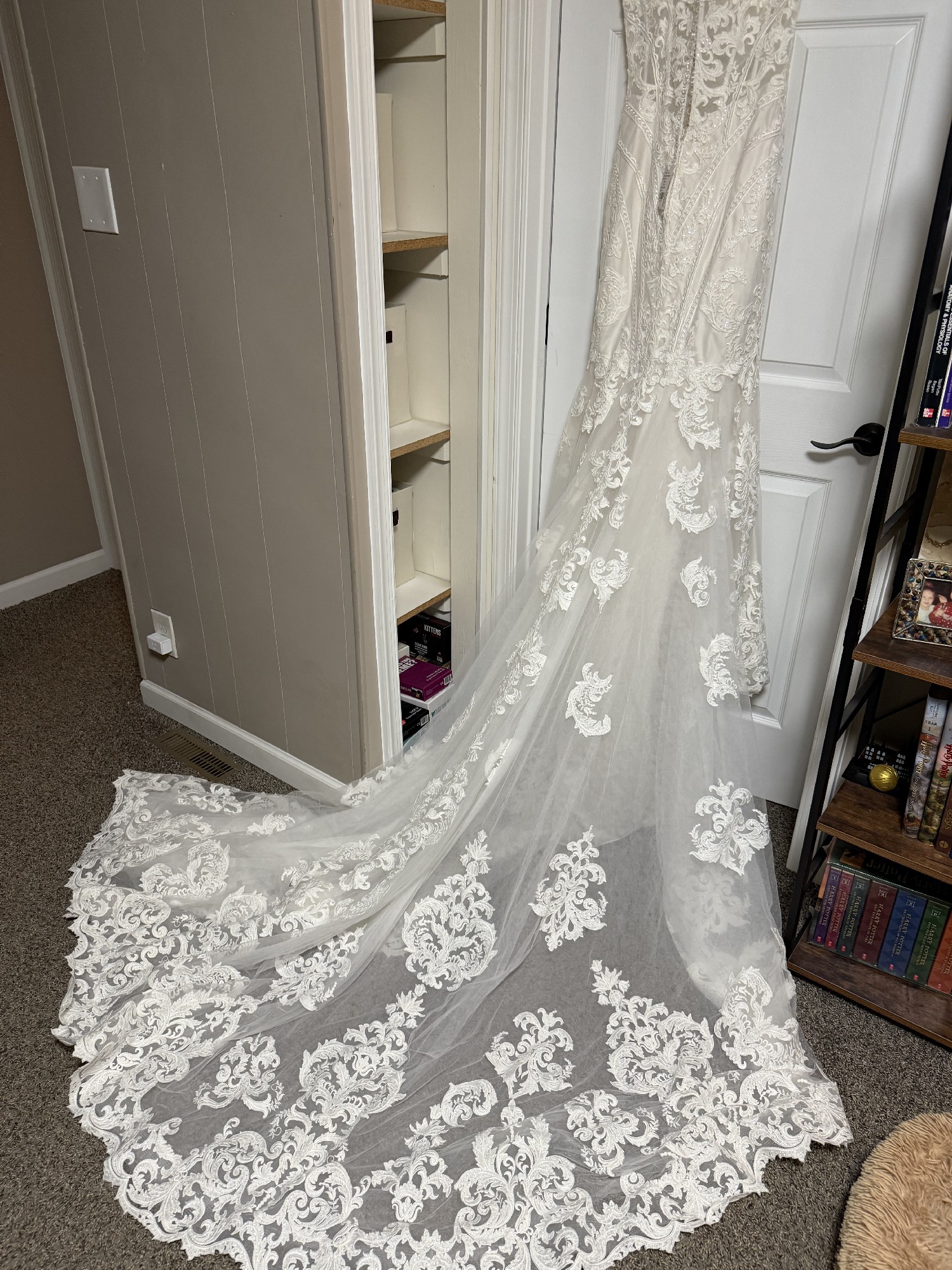 Absolutely stunning gown, never worn. Brand new, tag still on. Would fit somebody around 5’6”. Size 8