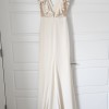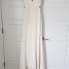 I bought this from a sample sale for my wedding but decided to go in a different direction. I love it so much, but ended going for something for a-line (though it could be a-line on you depending on your body type). It's an unaltered size 6 and fits me perfectly aside from the length! The matte silk crepe is absolutely luxurious and so buttery soft. It is more of a cream color than a pure white. It has been dry cleaned and kept in a dark closet to prevent discoloration. Let me know if you have any questions!