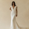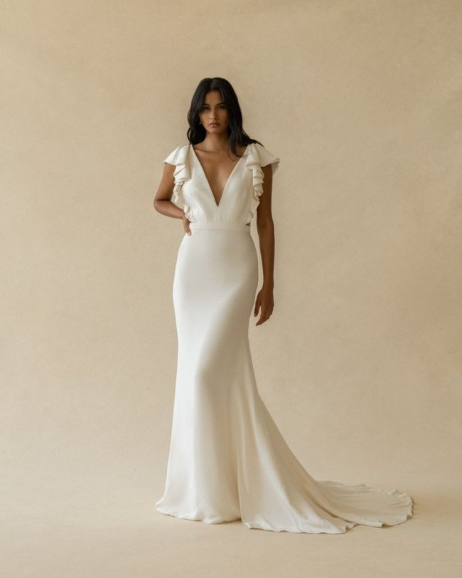 The Lucy Gown is sleek, feminine, and just all of the good things. The delicate ruffled bodice feels perfectly balanced with a clean, fitted skirt. Lucy features invisible mesh side panels that create a flawless fit, and the deep V-neckline & dramatic train elevate this gown to the next level.