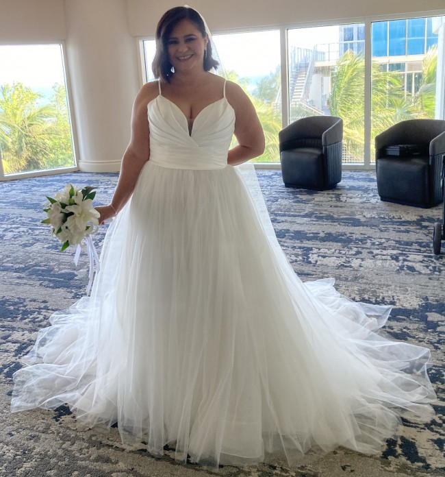 The dress can fit between a size 10 and a 14, it is a corset so you can adapt it to your body. It's also very comfortable and flattery.