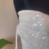 Her luxe, hand beaded and sequinned lace gracefully drapes across the bodice and waist to hug the body in all the right places, sculpting a flattering silhouette.
