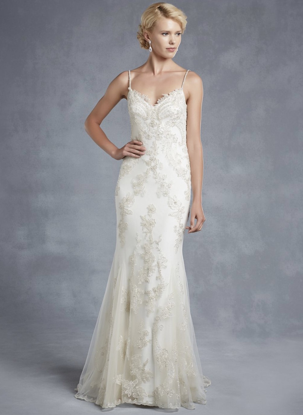 Gorgeous Enzoani-Henley mermaid gown. The most comfortable dress! Super soft lining. Straps stop the need for constant adjusting. Vintage inspired lace and intricate beading. This is THE dress for you if you want to look AND feel beautiful!! Worn once, then professionally preserved/hermetically sealed for safe keeping. I would be happy to send more pictures upon request.