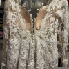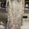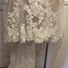 Gown is in great condition and has a double bustle for the long train. This would be perfect to have tailored to someone who is currently a size 10/12 or smaller or worn right away by someone who is a size 12/14 with curves! Lining is a light tan color and top is unlined with cups.