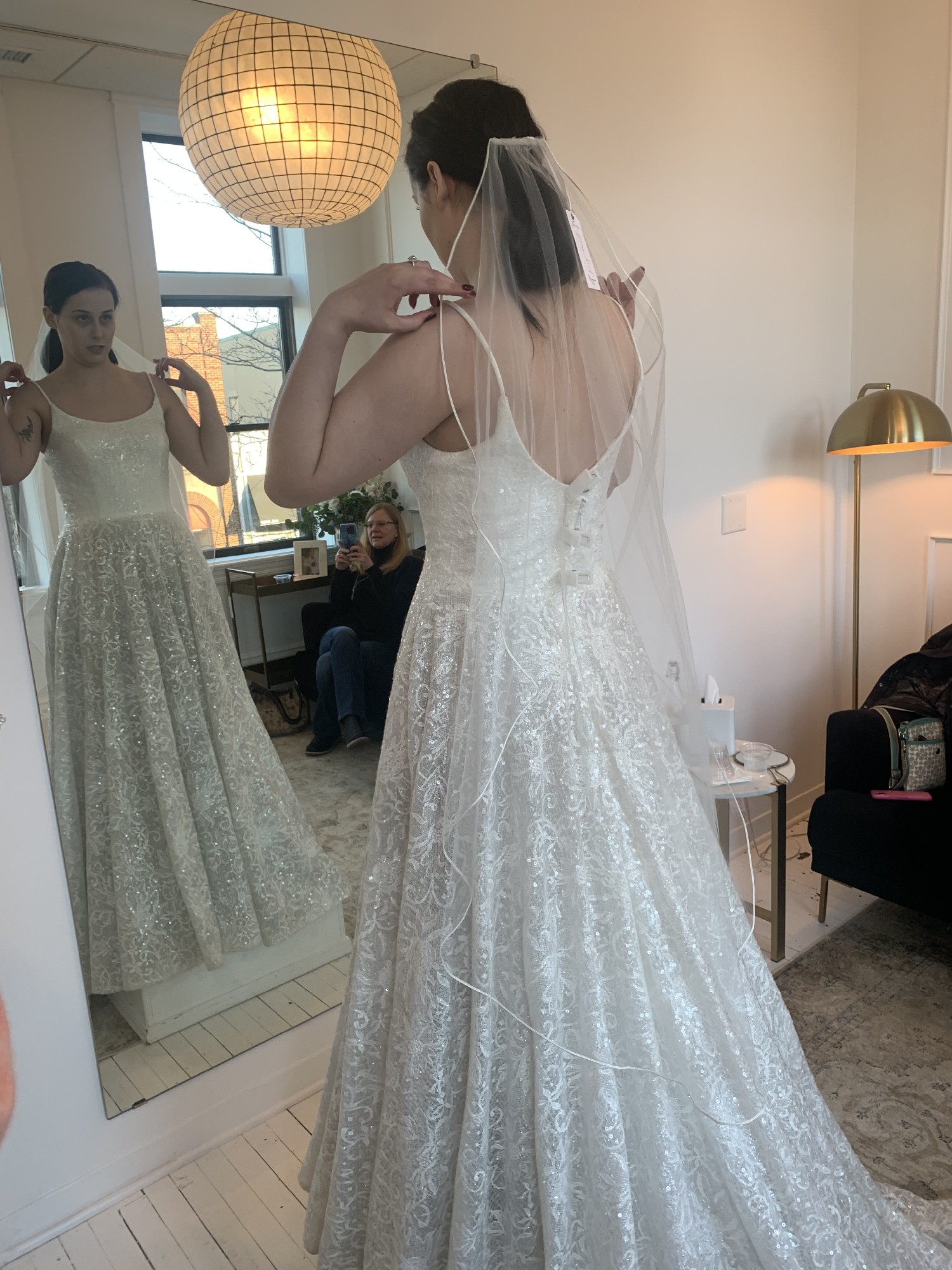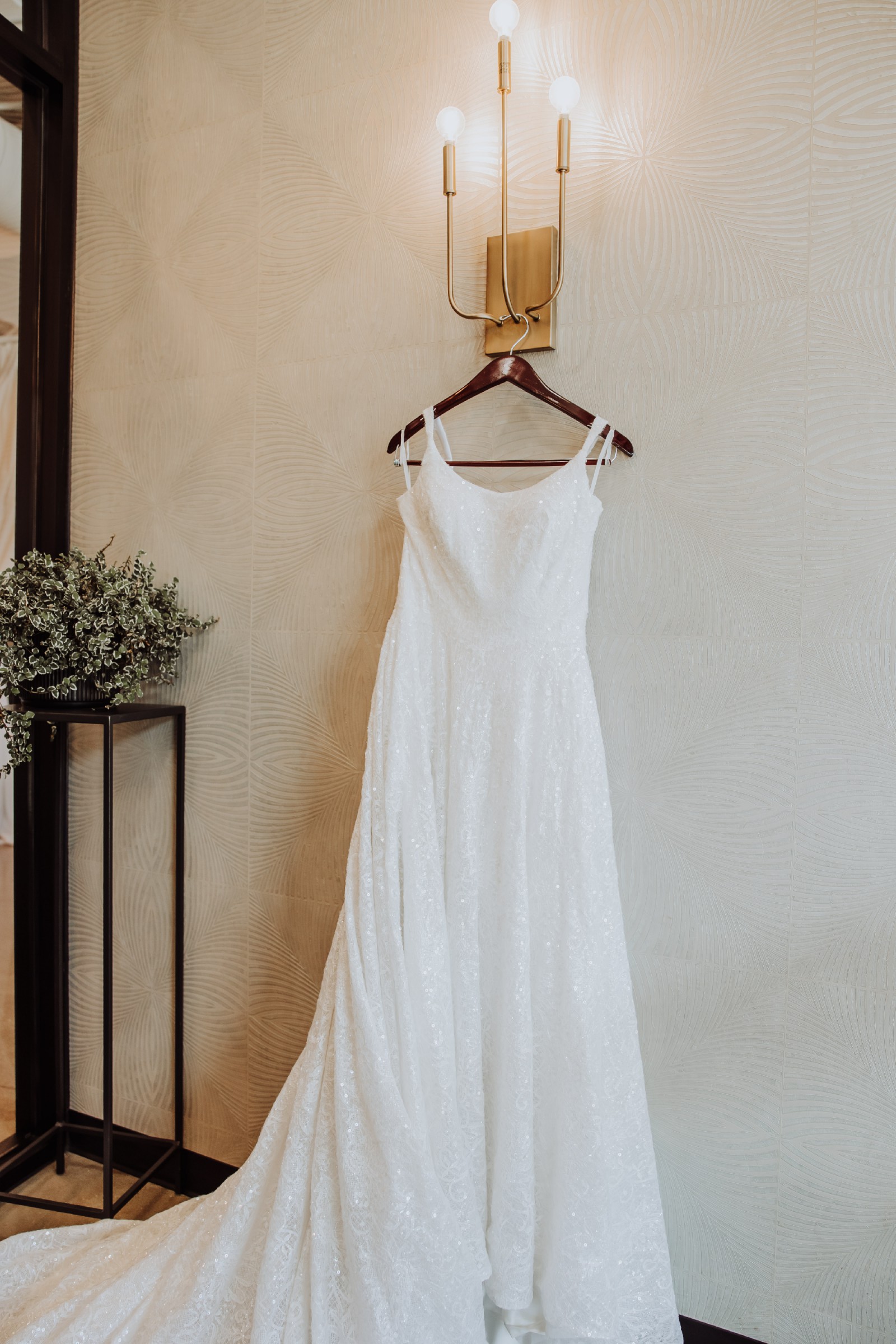 One of my favorite features of this dress is the hidden pockets, which were perfect for holding a few essentials without sacrificing style. The delicate sequins catch the light and create a subtle sparkle, adding just the right amount of glamour to my bridal look. The floor-length design flows beautifully, making each step feel like a scene from a fairytale.