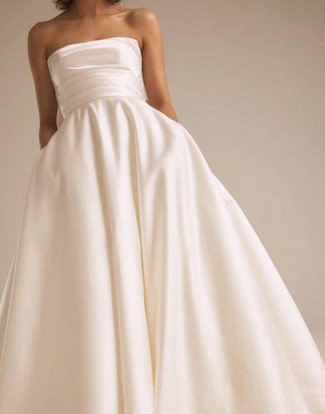 Selling Amsale Atlas dress UK12 as change of plans for big day.It has never been worn and brand new (not altered) Dress is strapless.