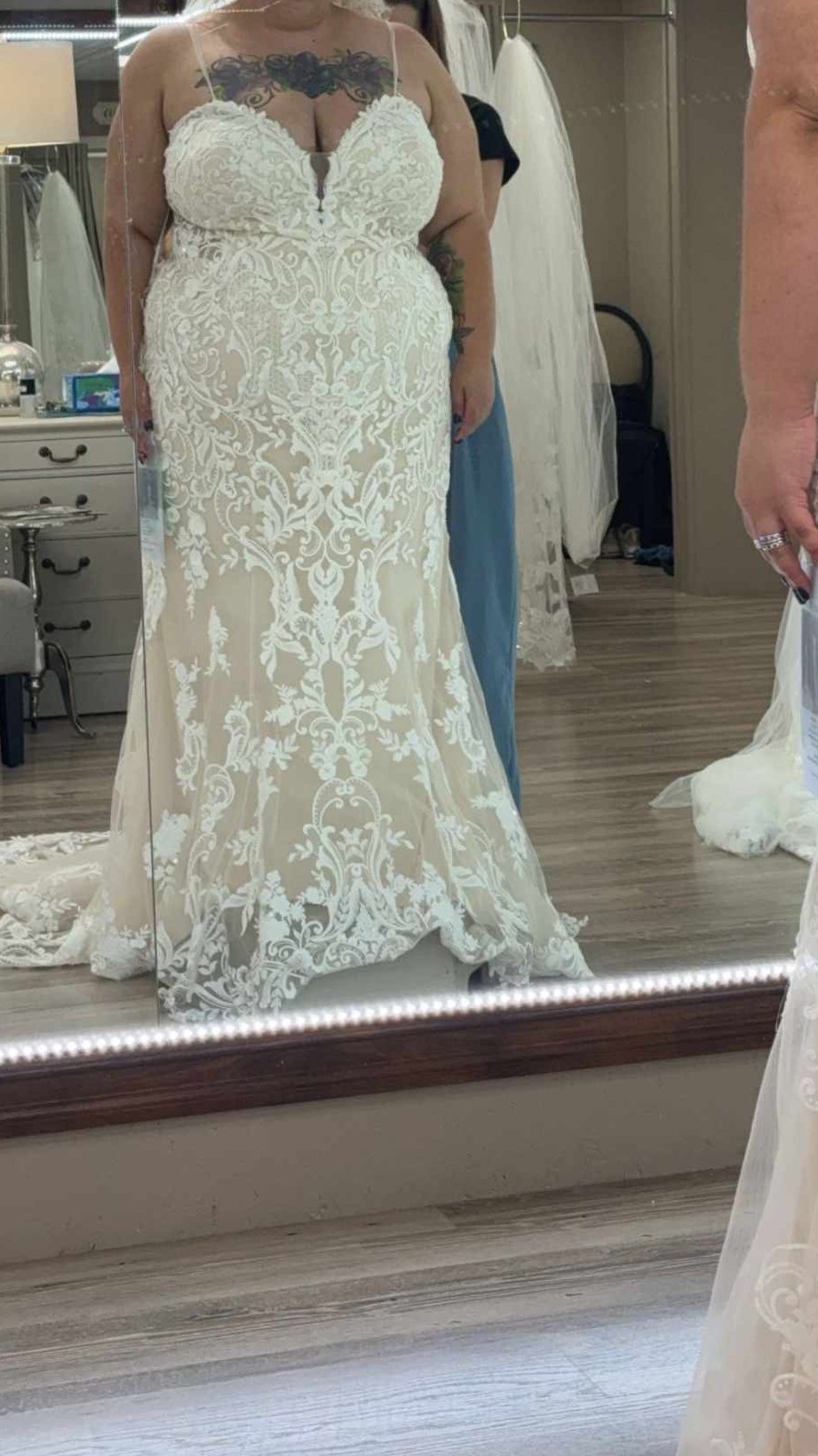 New with tags size 24 Madison James MJ420. Never wore, no alterations. Dress is beautiful with lace design, light weight.
