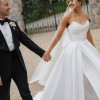 The soft silk fabric feels luxurious against the skin, while the classic A-line silhouette flatters every figure. With its sweetheart neckline and strapless design, this dress creates a timeless look.