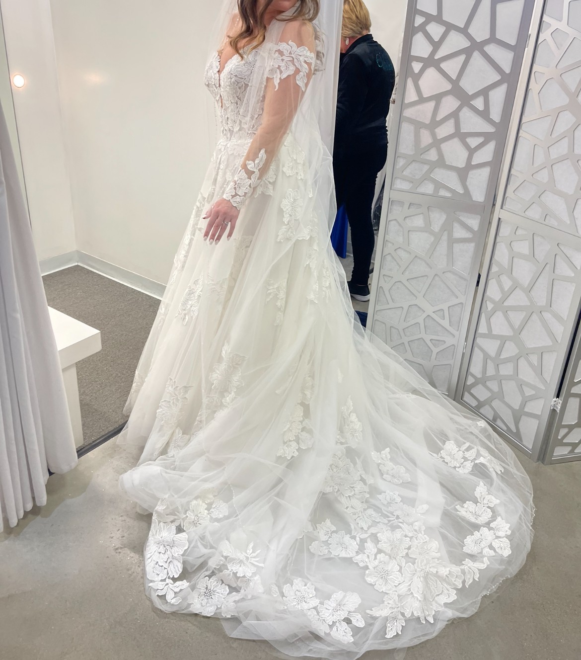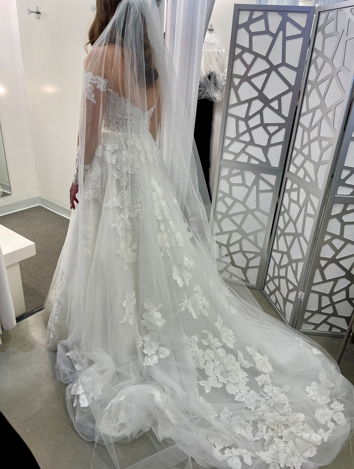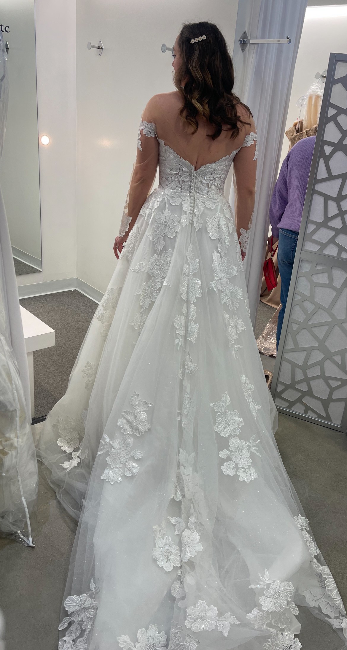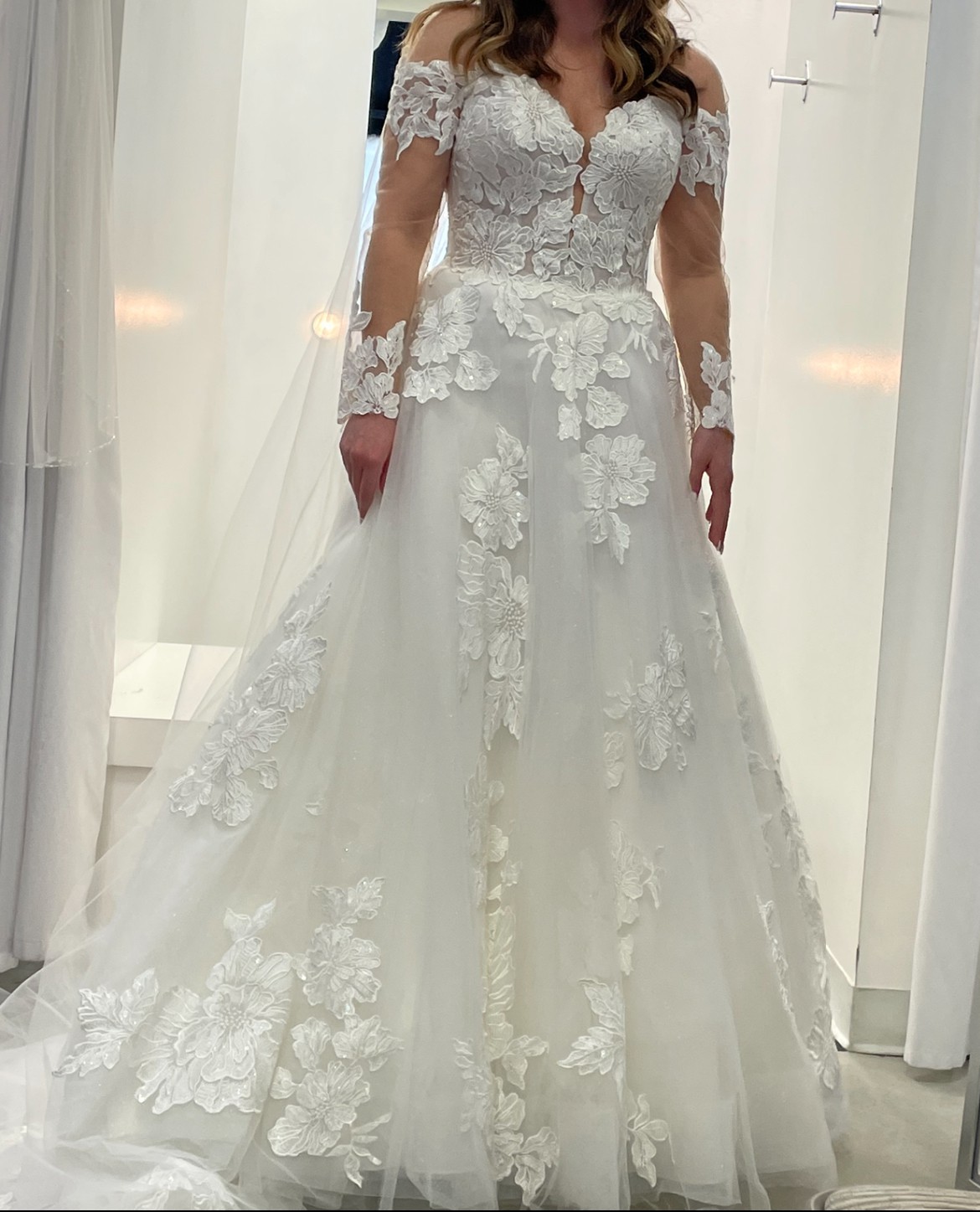 I tried on the first wedding dress I bought! And decided to wear my moms old restored dress instead.