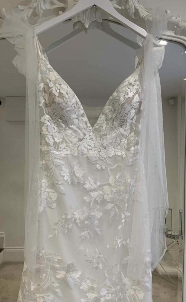 Was a sample dress, has been dry cleaned, in excellent condition and ready to be worn!