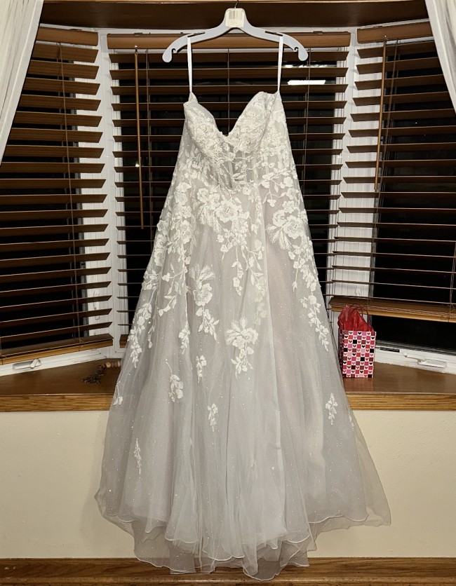 Brand new dress, wedding cancelled dude to Covid. Very sparkly dress, option for hanging arm straps