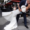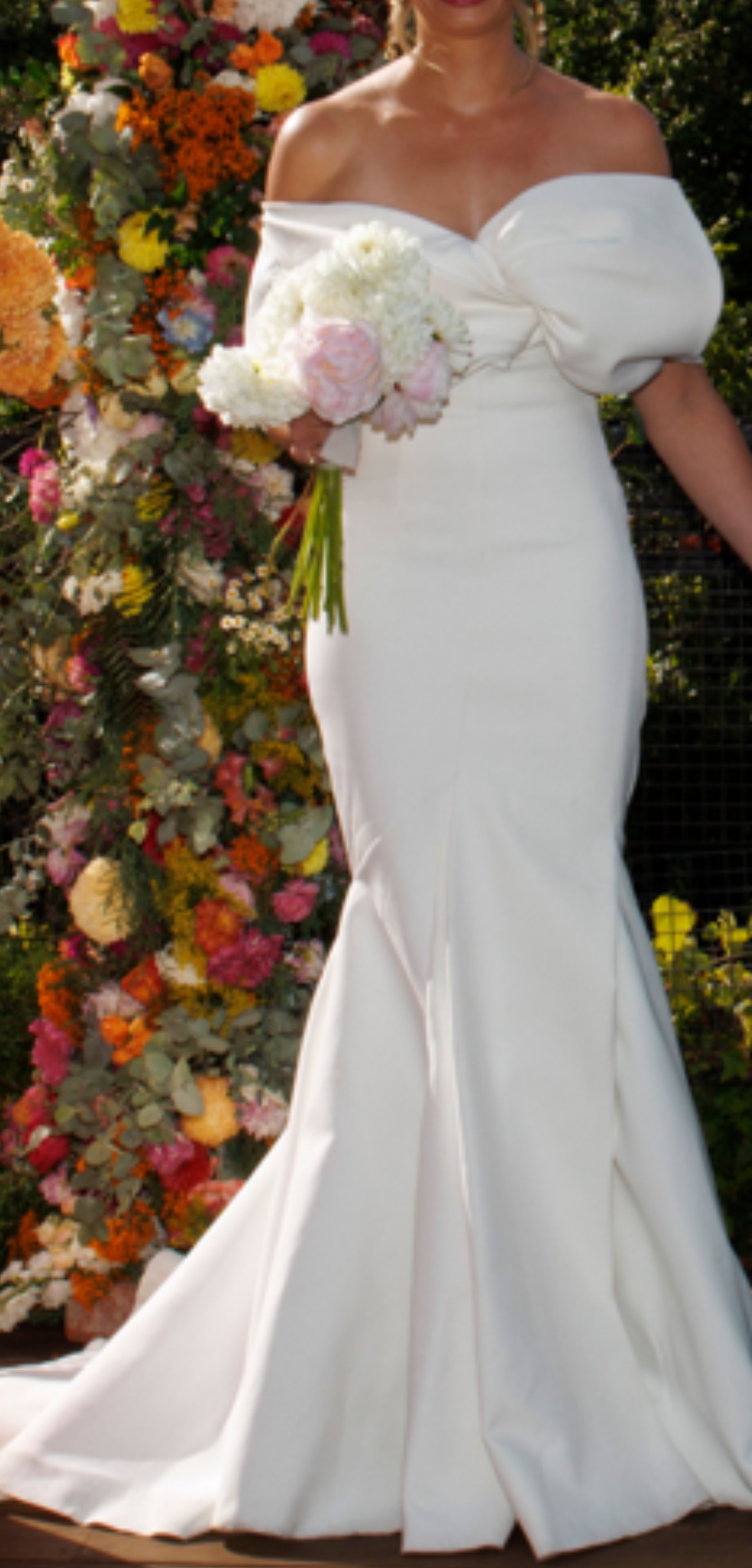 I wore this as my first dress for my wedding and absolutely loved it. Sadly we don’t have space to keep it. It’s a really nice thick fabric but has slight stretch so moves with you. I was able to dance in it with my partner. Can wear the sleeves on shoulder or off shoulder.