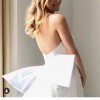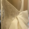 The low back creates a breathtaking reveal as you walk down the aisle, complemented perfectly by the delicate embroidery and charming bows that adorn the dress. The cream color exudes timeless grace, making it a versatile choice for any wedding setting, whether it’s a grand ballroom or an intimate garden ceremony.