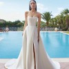 This Demetrios wedding dress, model 200146M, exudes elegance and romance, making it the perfect choice for your special day. The radiant ivory silk fabric drapes beautifully, creating an ethereal look that will leave your guests in awe. The A-line silhouette flatters every figure, allowing you to glide down the aisle with grace and poise, while the curved neckline adds sophistication.