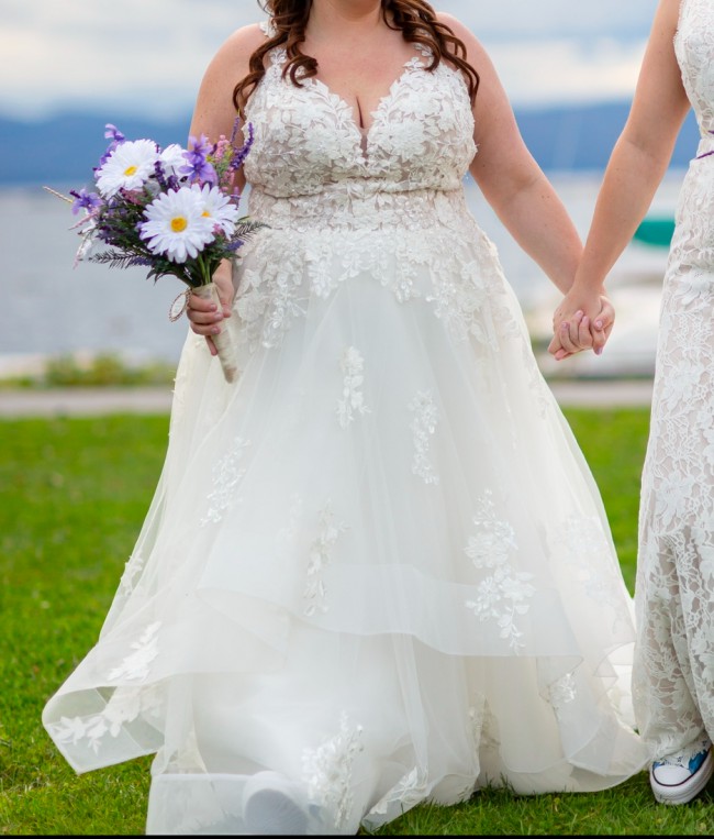 - Purchased as a size 24 in the store, the seamstress told me she "brought it down four sizes" bringing the dress to an approximate size 20