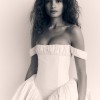 Currently being dry cleaned and will be available to ship soon. There should be no flaws considering it was worn for only a few hours.