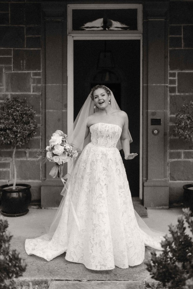 Stunning Dahlia gown made by Ella Moda for my wedding in March 2023. Corset bodice with visible boning, guipure lace, full tile skirt with a hidden zip at the back. Spectacular to wear, especially on the dance floor. No alterations. Professionally dry cleaned. Can include “blusher” veil for additional price, two tier ivory tulle length: 98inches/30inches gathered on the comb. Additional photos from designer Ella Moda here: https://ellamoda.com.au/lucy-dahlia/ https://ellamoda.com.au/collections/la-vie-en-rose/dahlia/