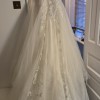 This breathtaking Benjamin Roberts dress was the perfect gown for my magical day. The moment I slipped it on, I felt like a true bride—its exquisite ivory lace fabric drapes elegantly, creating a stunning A-line silhouette that flatters every figure. The curve neckline adds a romantic touch, accentuating my collarbone beautifully while the mid-back design offers just the right amount of allure.