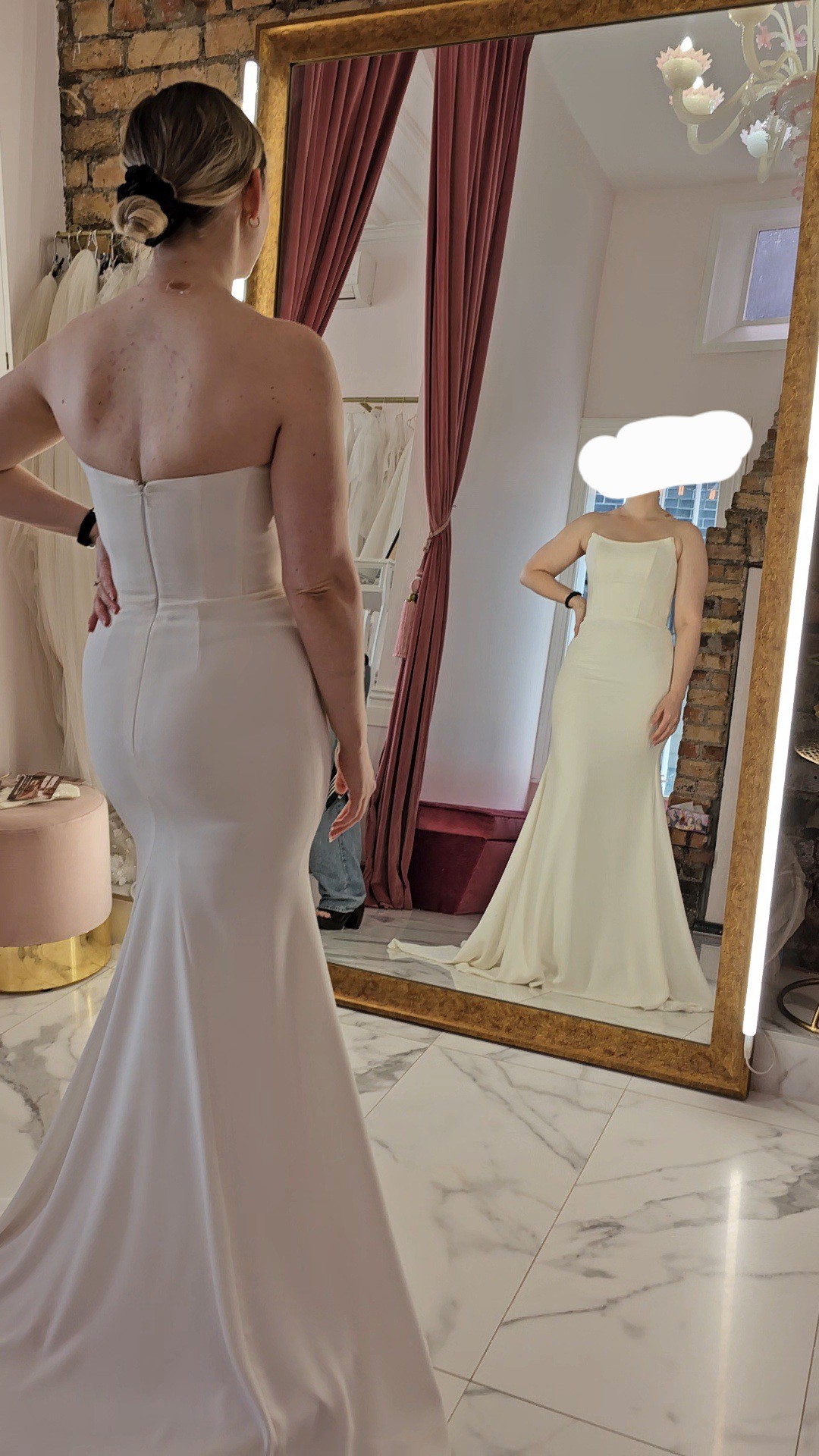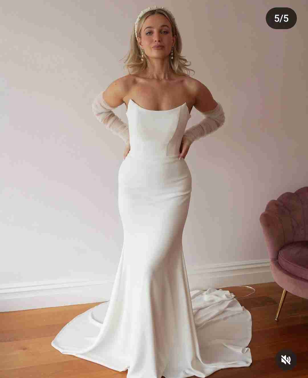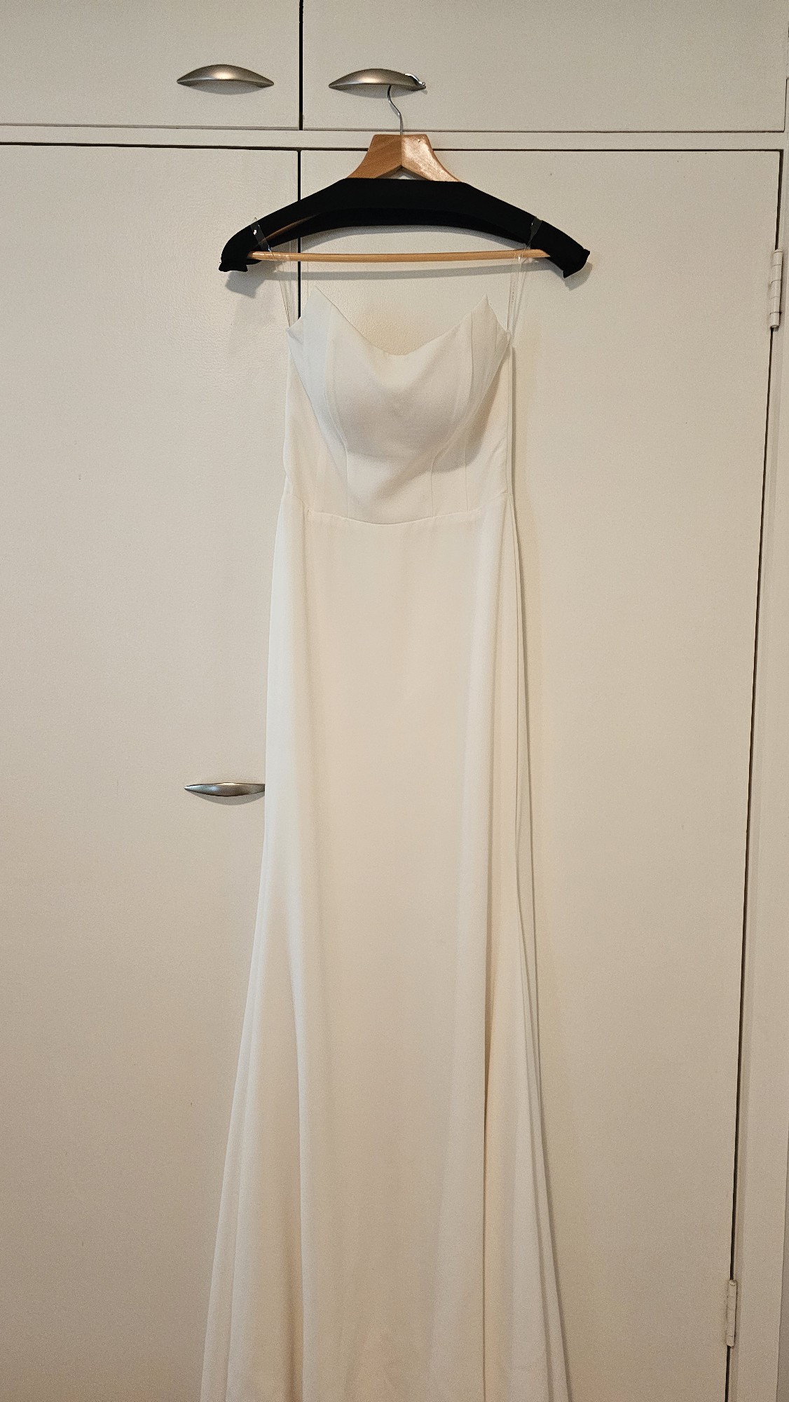 **Price negotiable** Eva Lendel Margo Wedding Gown – Unworn & Unaltered Selling my gorgeous Eva Lendel Margo gown, purchased from Natalie Rose Bridal at a sample sale. ✨ RRP: $3,590 ✨ Material: Ivory crepe – sleek, elegant, and timeless ✨ Size: Standard 10 as per Eva Lendel size chart in photos (best fit size 8, 8-10 or 10) ✨ Condition: Unworn, unaltered, and freshly dry-cleaned I found another dress for my special day which was a better fit for me as this was slightly too small. I would love for this one to go to a bride who will adore it! Try-ons available in Auckland (North Shore). Message me for more details or to arrange a time!