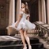 Make an unforgettable entrance in our Cendrillon Off-Shoulder Corset Lace-Up Mini Dress, a breathtaking fusion of modern luxury and timeless fairytale elegance. Designed for the sophisticated bride and fashion-forward woman, this dress is the epitome of romance, glamour, and couture craftsmanship.