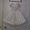 WORN FOR 2 HOURS. NOT DRYCLEANED IN PERFCT CONDITION. THE QUALITY AND FIT OF THIS DRESS IS AMAZING AND VERY UNIQUE. ALSO COMES WITH THE SKETCH FROM THE DESIGNER.