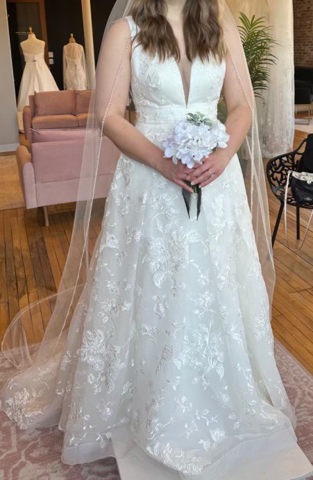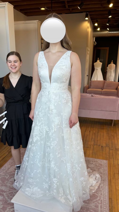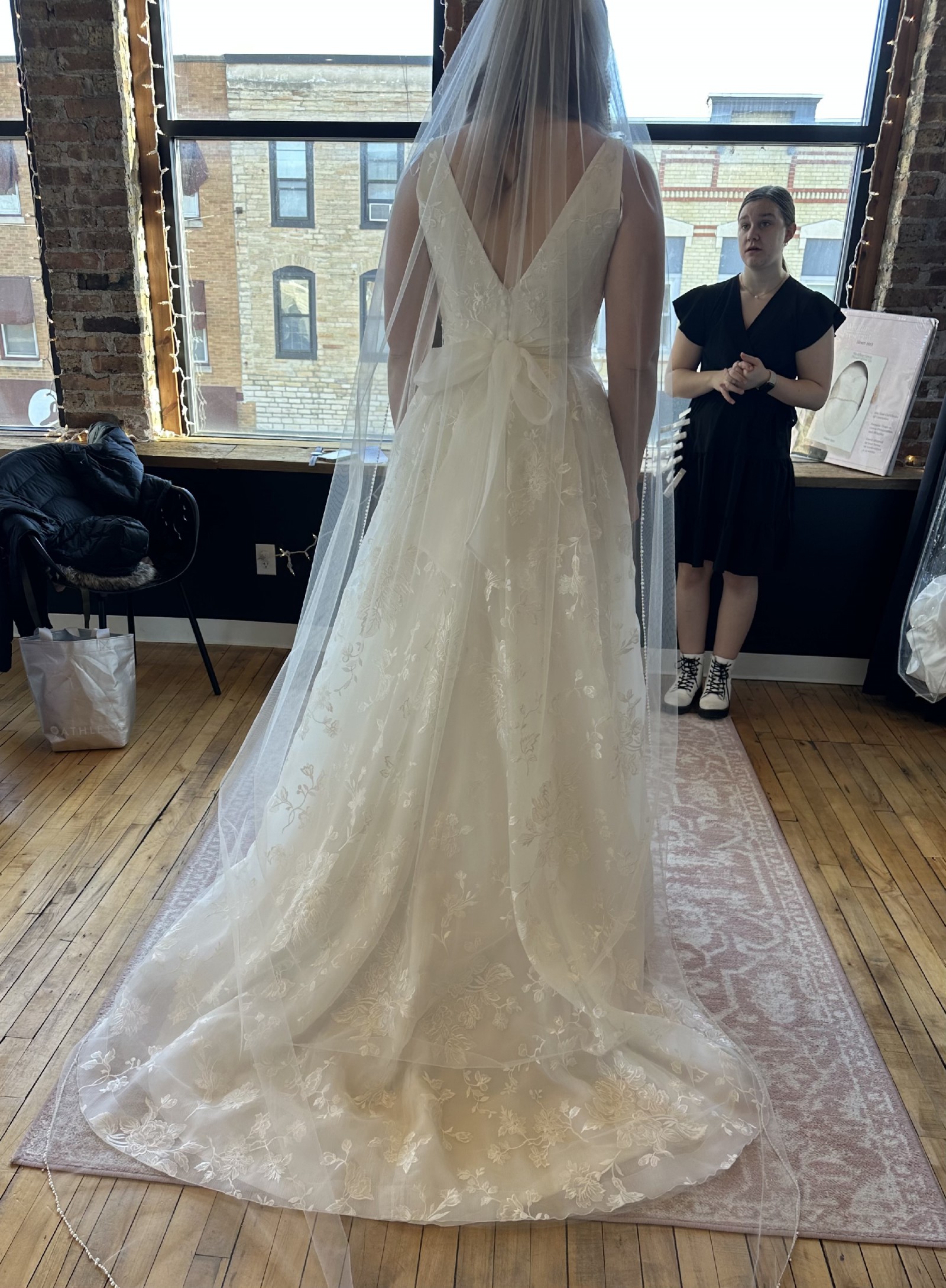 Hello! This is a gorgeous dress that I bought thinking that it was the one for me. However, I fell in love with the ballgown look, so, unfortunately, I am looking to sell this one! It is absolutely beautiful, feels light and flowy on, and is so flattering around the waist. The dress is from Bon Bon Belle, and is a Bon Bon Belle Exclusive, but I was told that it's originally from the designer Honor Bridal. They ethically source their dresses, and the pieces are high quality, which is another reason why I fell in love with this dress. Please let me know if you have any questions about it!