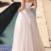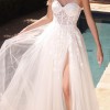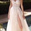 Cut from swaths of delicate tulle, this strapless A-line gown features a sheer fitted bodice with supportive boning and a voluminous floaty skirt that overlaps at the waist seam to create a dramatic leg opening and fluid movement with each step. The gown boasts a radiant degrade floral design that softens the corset construction and seamlessly marries the bodice and skirt. Frothy layers of tulle are gathered at the waist and fall to a graceful train that sweeps the floor.