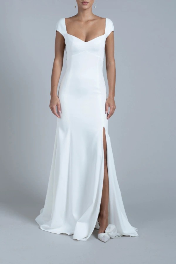 Rime Arodaky Gaia dress. I felt like a princess in this and would love for someone else to feel that way too. I would recommend a size 10-12 trying this dress on and as I am tall it can be taken down to any height.