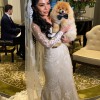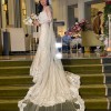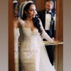 The ivory lace fabric features intricate beading and crystals, catching the light with every movement. The corset back adds both support and style, ensuring a perfect fit throughout the day. I fell in love with the detachable sleeves, allowing for a versatile look—sleek elegance during the ceremony and a timeless style at the reception.
