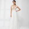 This enchanting Jette dress by Anna Kara embodies elegance and romance. Luxurious silk fabrications and bohemian elegance manifested in an off-shoulder bodice finished with textural embroidery intricately arranged over delicate, botanical lace. Jette is made for a confident bride, drawn to timeless and sophisticated design.