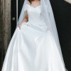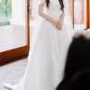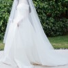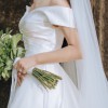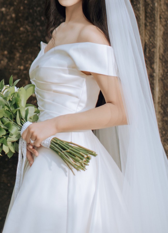 I love Elie Saab wedding dress so much and especially the silk gown from S1 2019. But that’s too expensive so I had this dress custom-made which achieved the same timeless, classic look. It’s crafted from luxury satin, offering the smooth texture of silk and a glossy sheen that mirrors its elegance. It has the beautiful neckline with an off shoulder design which exuding an effortlessly elegant beauty.
