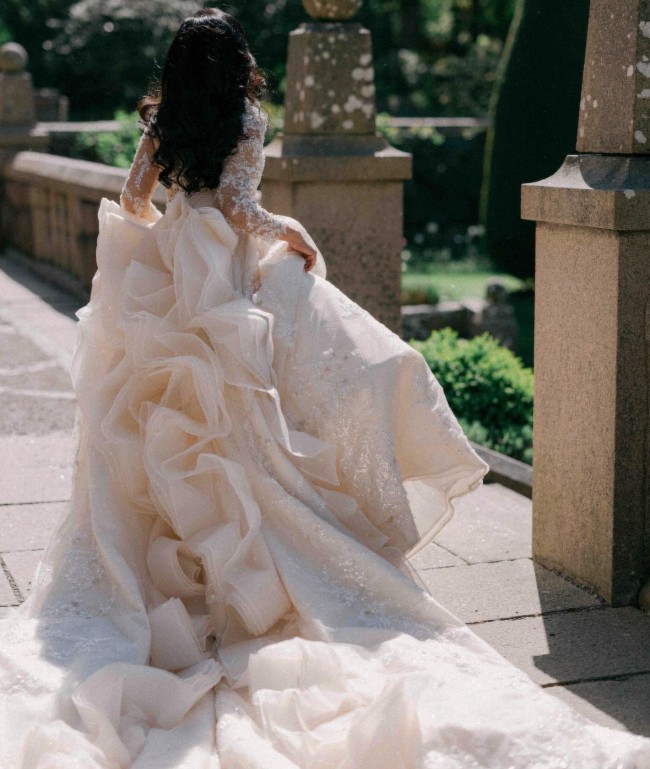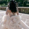 This enchanting Amanda Novias ballgown holds a special place in my heart, and I'm ready to pass it on to another bride who will cherish it just as much. With its graceful scoop neckline and exquisite sheer back, this ivory masterpiece captures an ethereal elegance that made me feel like a princess on my wedding day. The long sleeves, beautifully detailed with intricate lace, add a romantic touch that’s both timeless and sophisticated.