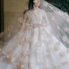 Every inch of this gown is adorned with delicate beading, shimmering crystals, and exquisite embroidery, making it truly unforgettable. The floor-length silhouette flows beautifully, enhancing the dramatic flair of the dress while allowing for effortless movement. And let’s not forget about the stunning veil that comes with it, perfectly complementing the dress and adding a magical finish to your bridal look.