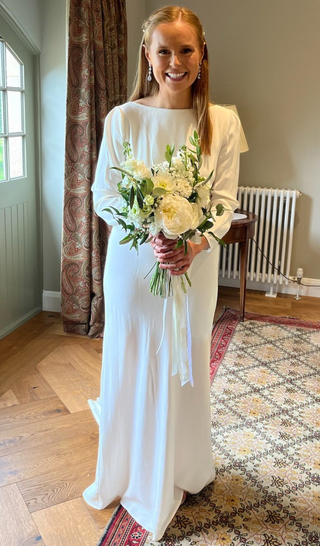 Silk Rixo Cesca wedding dress - simple style, with small jewels on neckline and v of the back.