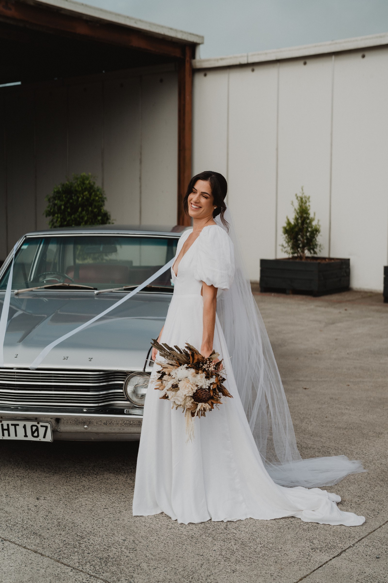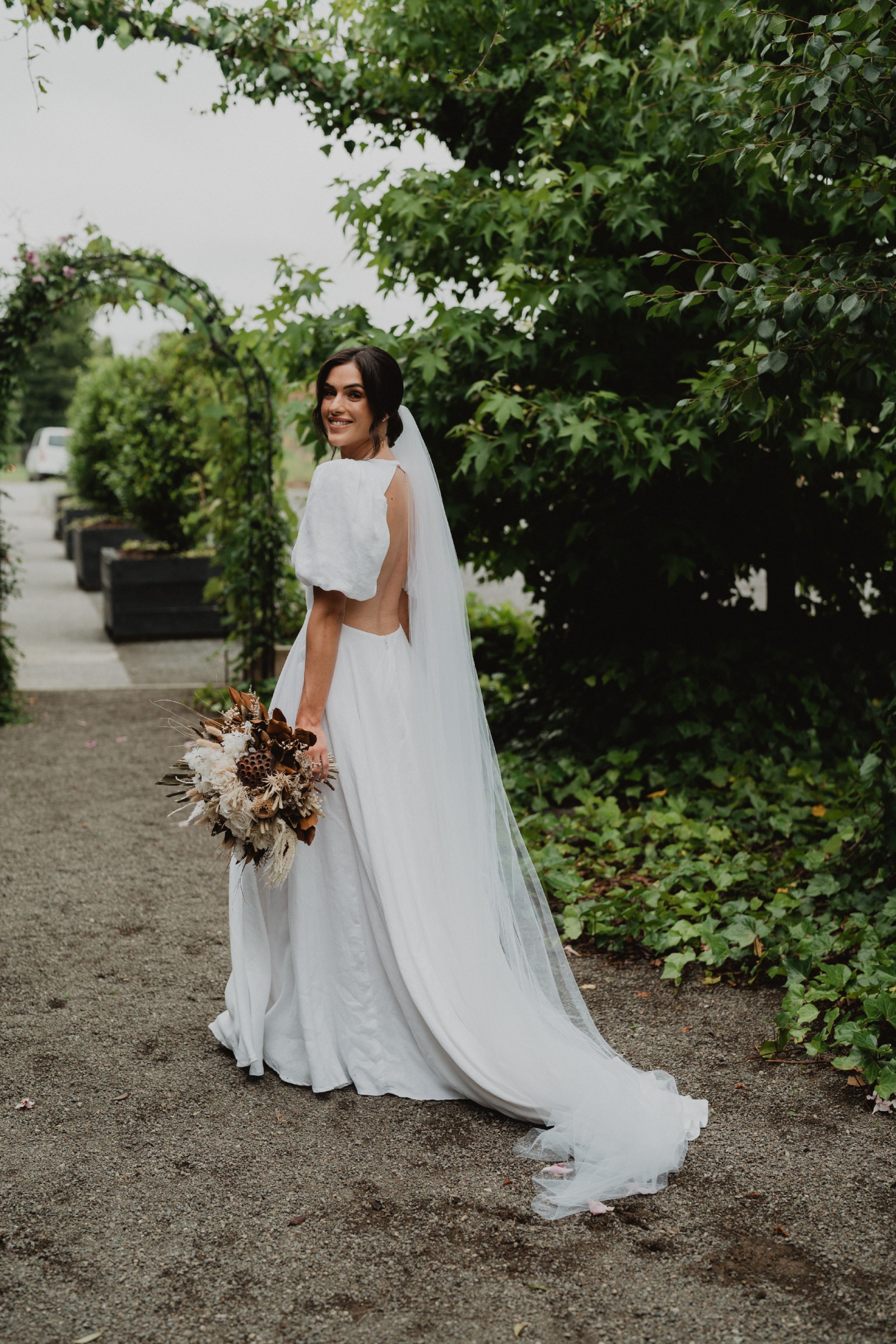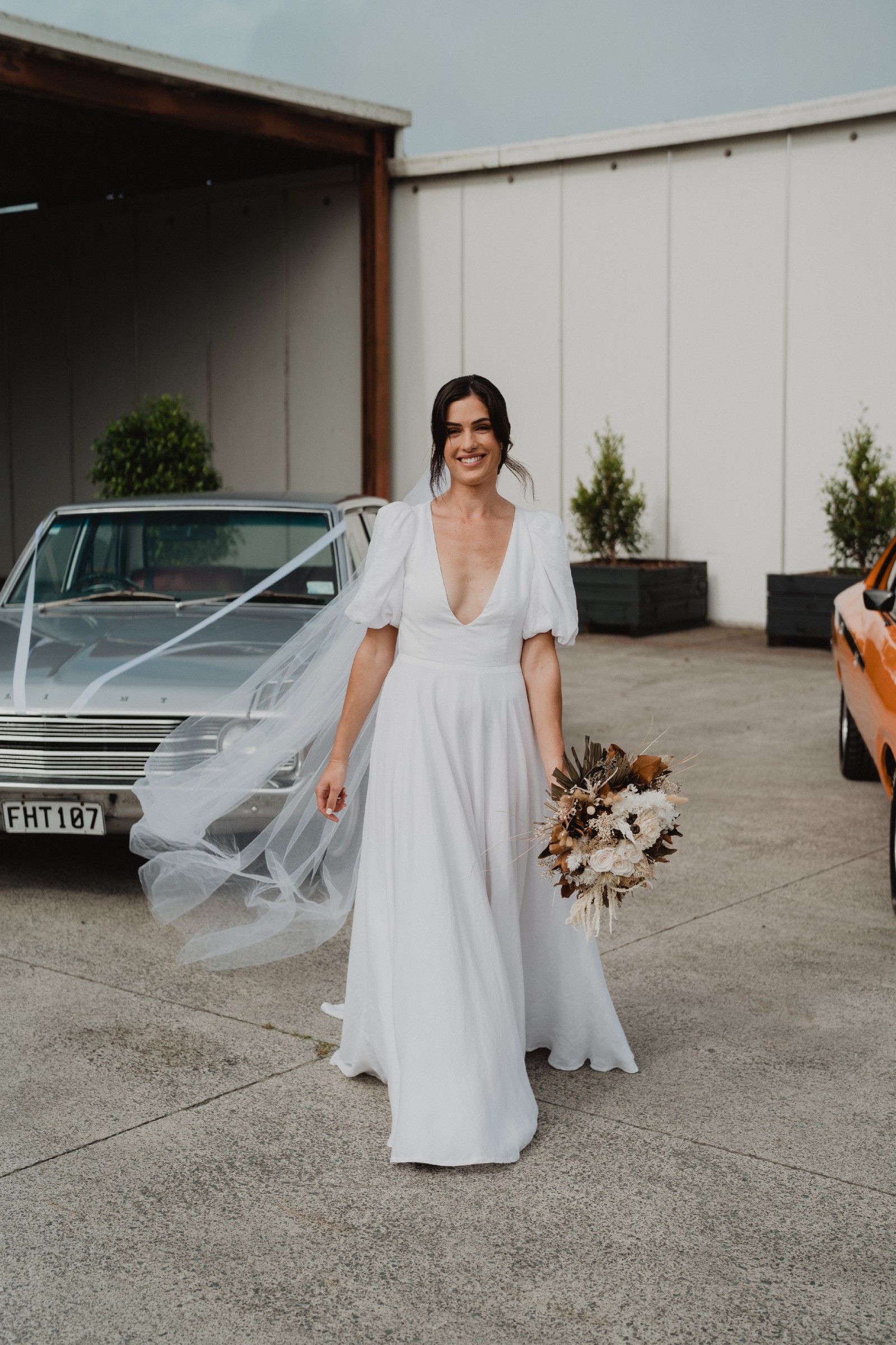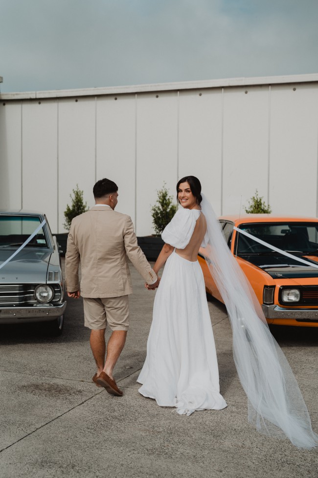 Our all time fave gown. Together with our signature puff sleeves, a deep V neckline, a stunning open back, and a voluminous ball gown skirt with pockets, this beautiful gown will have you feeling like a modern day Princess Di. Available in both linen and crepe.