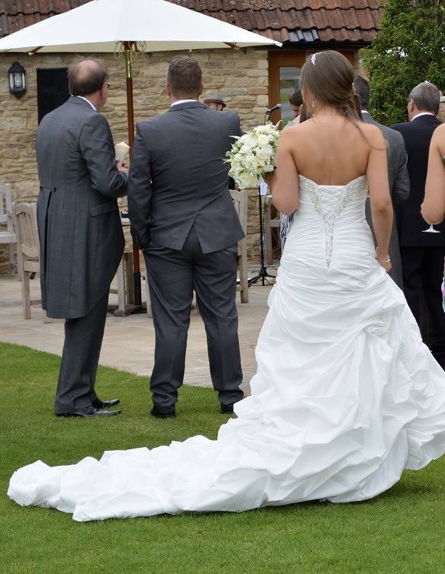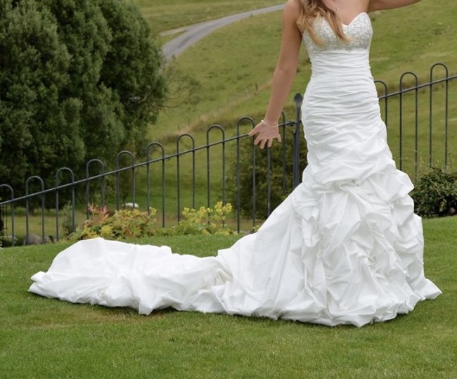 Crafted from luxurious taffeta, this dress feels as exquisite as it looks. The rich, white fabric shimmers softly, especially with the delicate crystals adorning the bodice, infusing the gown with just the right amount of sparkle. You'll feel like a true princess as you walk down the aisle, radiating confidence and grace.