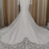 Featuring a captivating V-neckline, this dress offers a perfect balance of modesty and allure, leading into long sleeves that elegantly frame your arms. The V-back detail enhances the overall design, providing a breath taking view as you make your way down the aisle. In a timeless ivory hue, this floor-length gown exudes a classic charm that is sure to make any bride feel utterly enchanting on her special day.