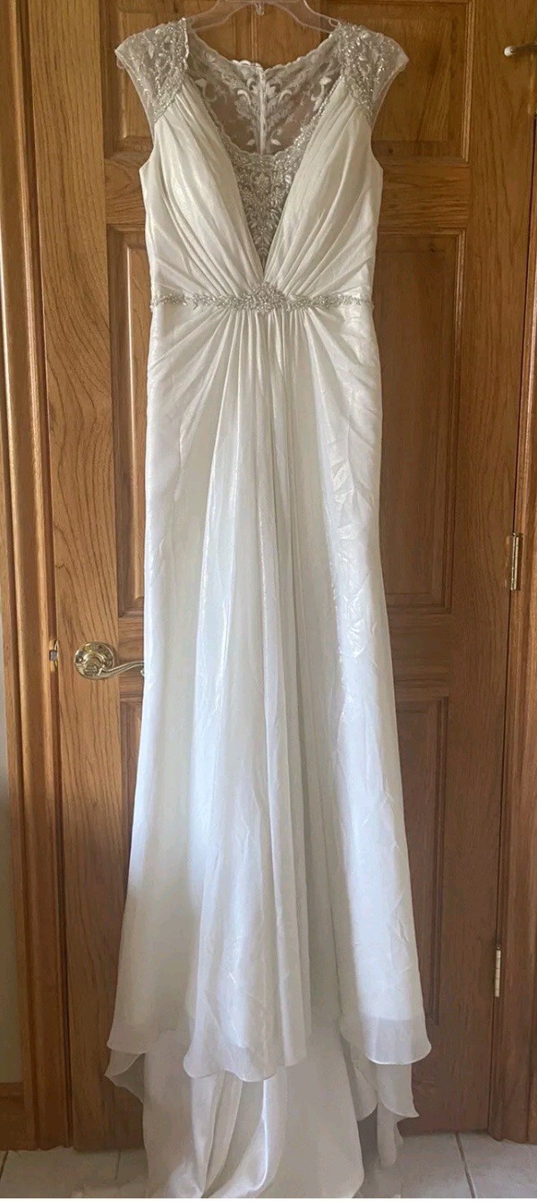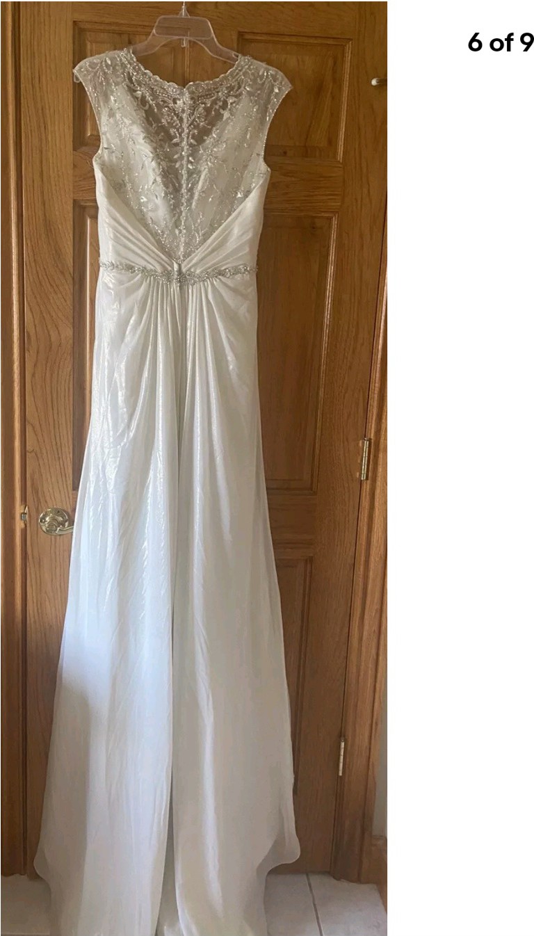 This dress is absolutely beautiful and flawless from what my eyes can see. The shimmer of the fabric along with the beads, and sequins is so gorgeous in the light. The flow of the dress is so flattering. It just simply wouldn't fit my chest. Open to offers as I need to find a new dress and would just like to make something back.