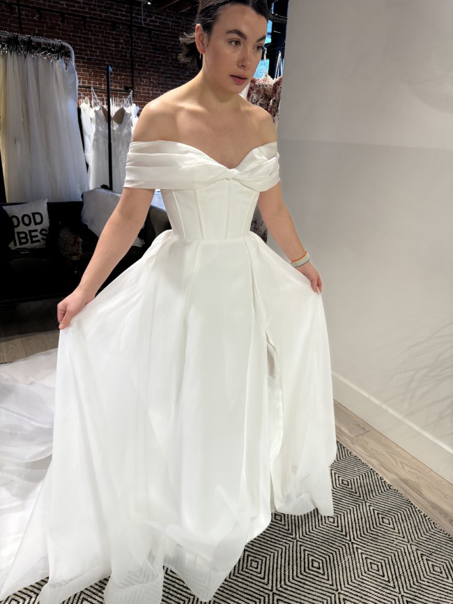 The dress is beautiful, but unfortunately I’m no longer getting married and would like to see someone else who loves the dress to have it. Dress is new from A&Bé, has the crepe included. I’ve stored it in my parents closet in the bag and it has not been worn/touched since I picked it up.