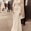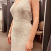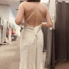 This dress is stunning and I'm sad it never worked out for my big day. It's a beaded, off-white wedding dress from David's Bridal Studio with crossing spaghetti straps. The only time I wore it was during the try-on. It still has tags and was not altered. I bought for $499. Zips up and straps cross at the back. It has a gorgeous art-deco style and even though it's entirely beaded, it is not heavy at all. The pictures of it hanging show the most accurate color. Kind of like a greyish white. Size is 4. Best for XS or S brides.