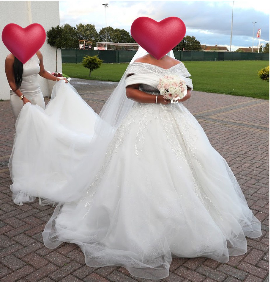 Beautiful wedding dress only worn a couple of weeks ago for a few hours.