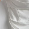 Duke features a structured, corseted bodice and fit and flare skirt. Cut from luxe triacetate and draped artfully across its scooped neckline and waistline, Duke masters the sartorial craft of elevated drama.