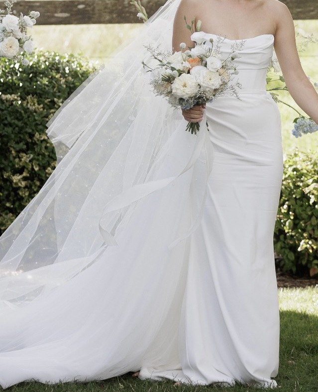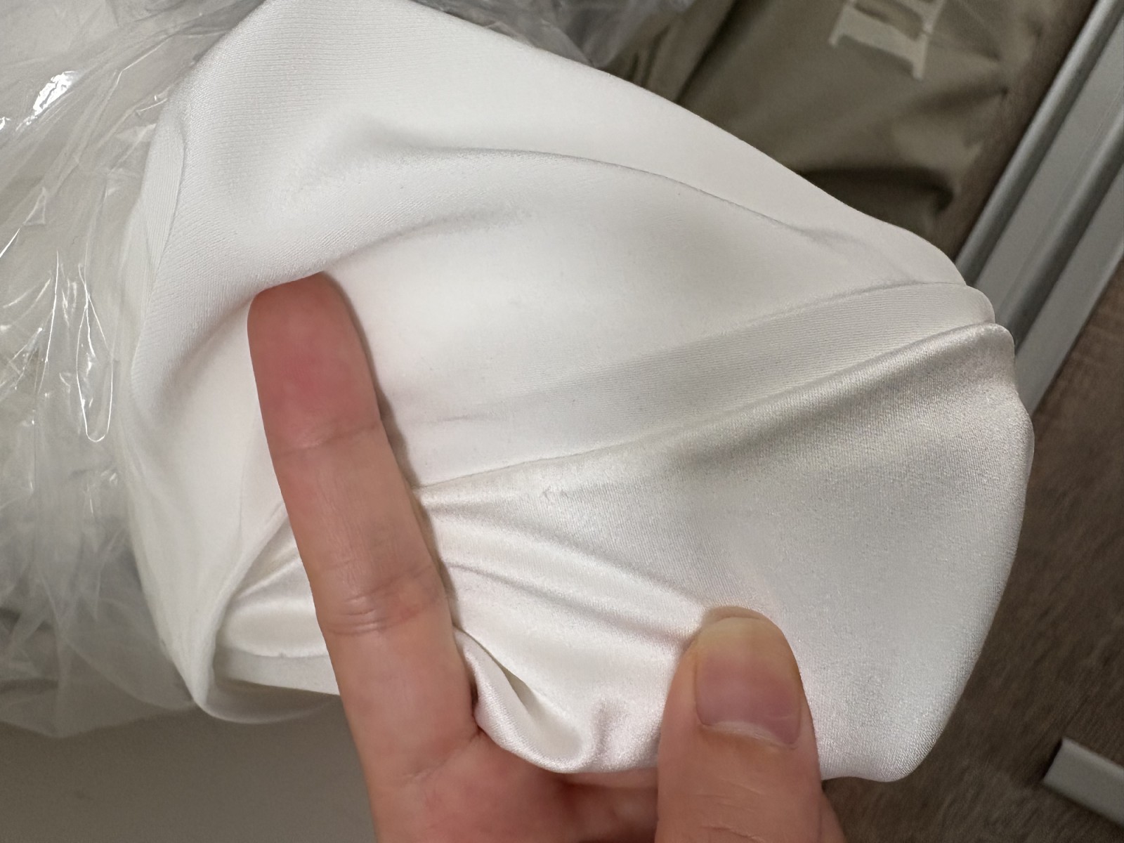 It has been dry cleaned. A faint mark remains at the bottom of the dress as shown.