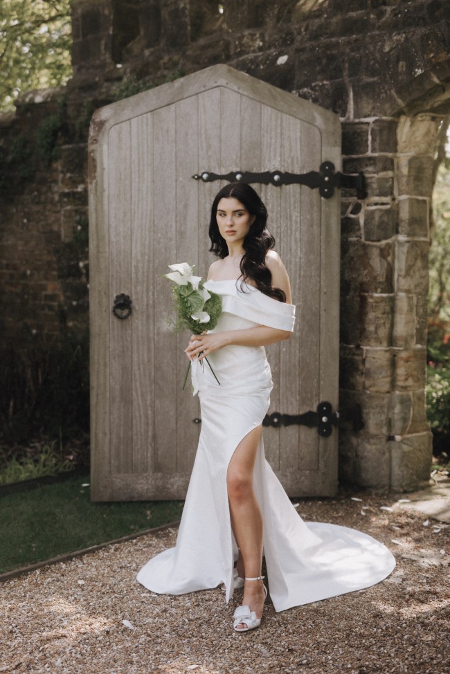 Snatched waist with corset bodice. Pearl detail on bust area, please see photos.