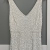 Floor length beaded v-neck gown with beautiful details. Zipper back.