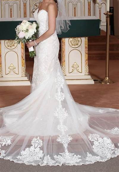 This breathtaking Stella York 6814 wedding dress is perfect for the bride looking for timeless elegance, intricate detail, and a flattering silhouette. The gown is brand new, never worn, and still in its original condition with all tags attached. With its romantic lace appliqué, delicate layers of lace, and graceful flow, this gown will make you feel like you're walking down the aisle in a dream.
